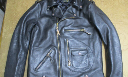 ルイスレザーのサイクロンの長い袖丈を短く直していきます。今回は来店されたお客さんで取りに来れないとのことで京都府に作業終了後に荷物を送ることになりました…