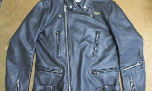 ルイスレザーのライトニングの長い袖丈を短く修理していきます。今回は千葉県からの郵送のお客さんで荷物と一緒にメモに袖丈を肩口から4㎝短くしたいことが書いて…