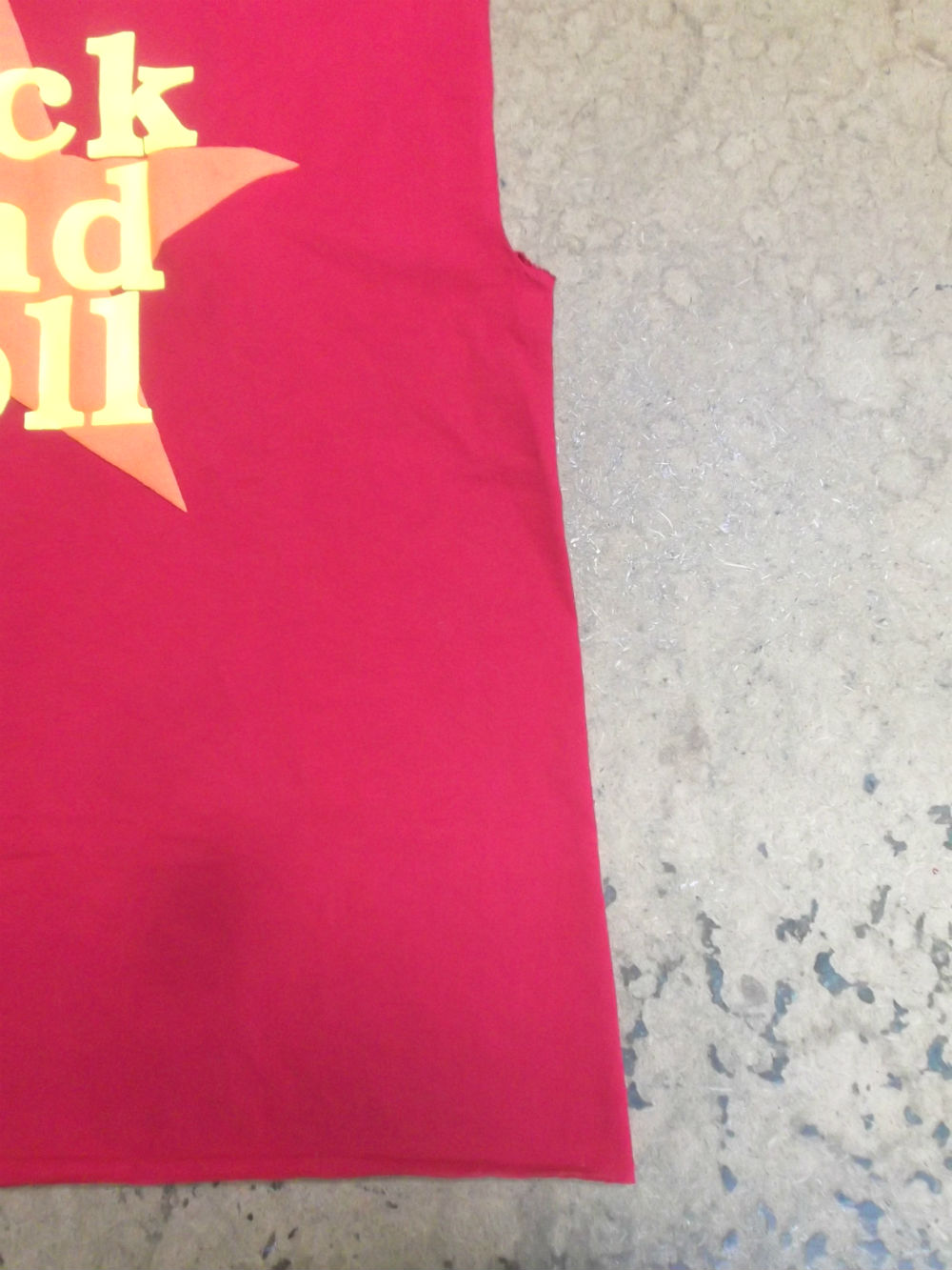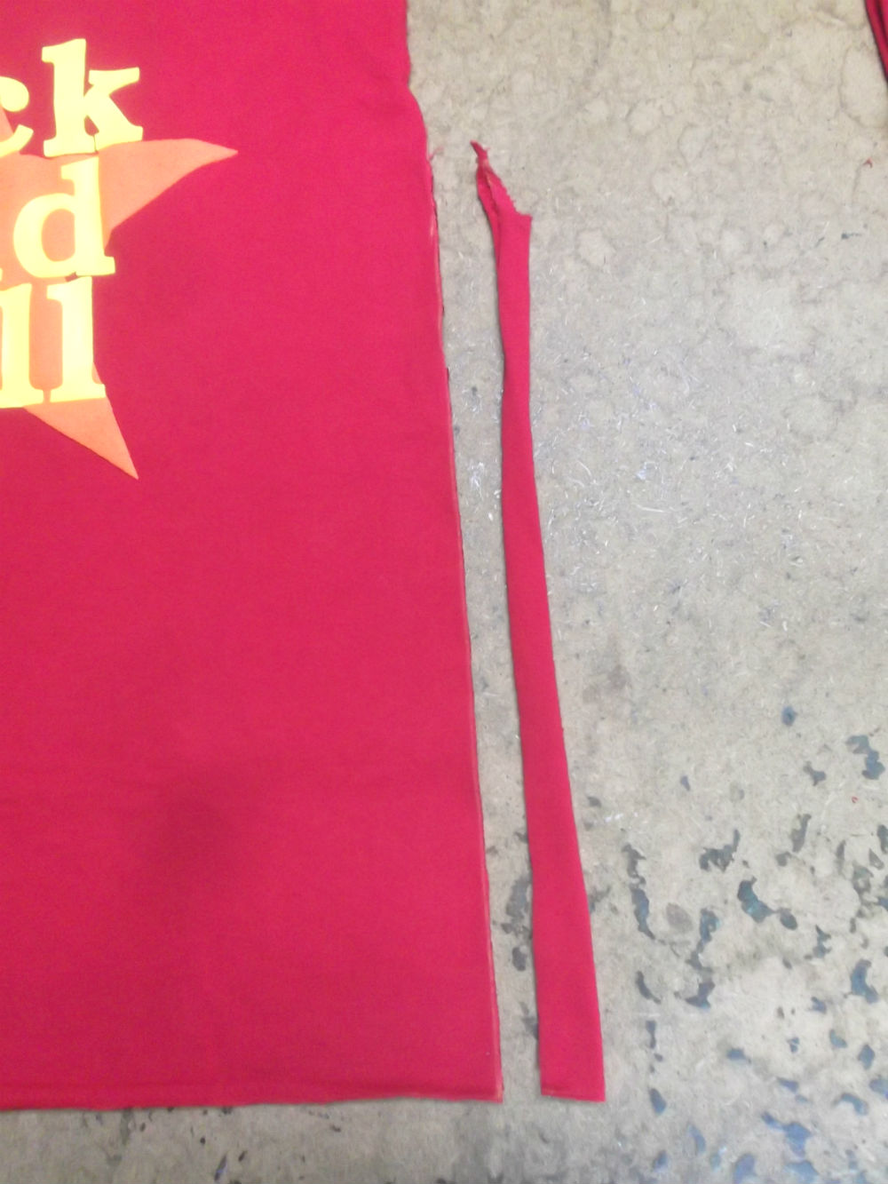 7枚目は見本のTシャツの幅に合わせてサイドの生地をカットした後の写真です。