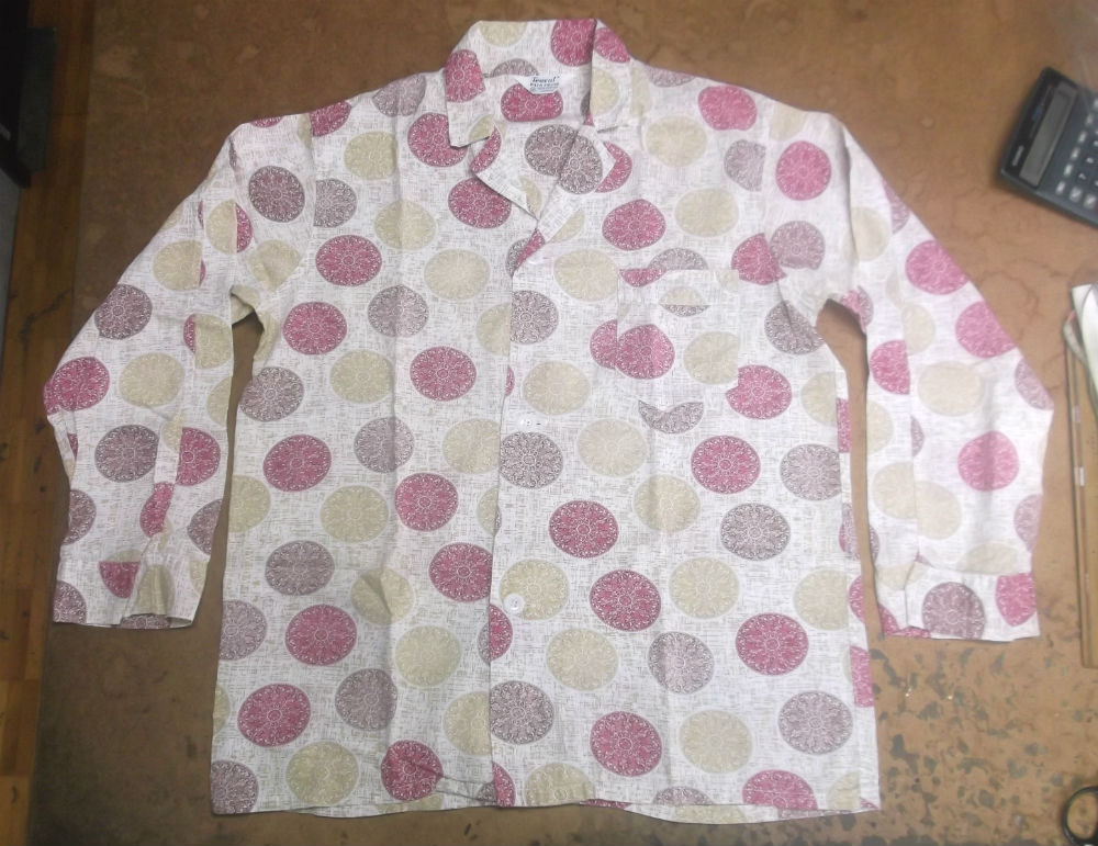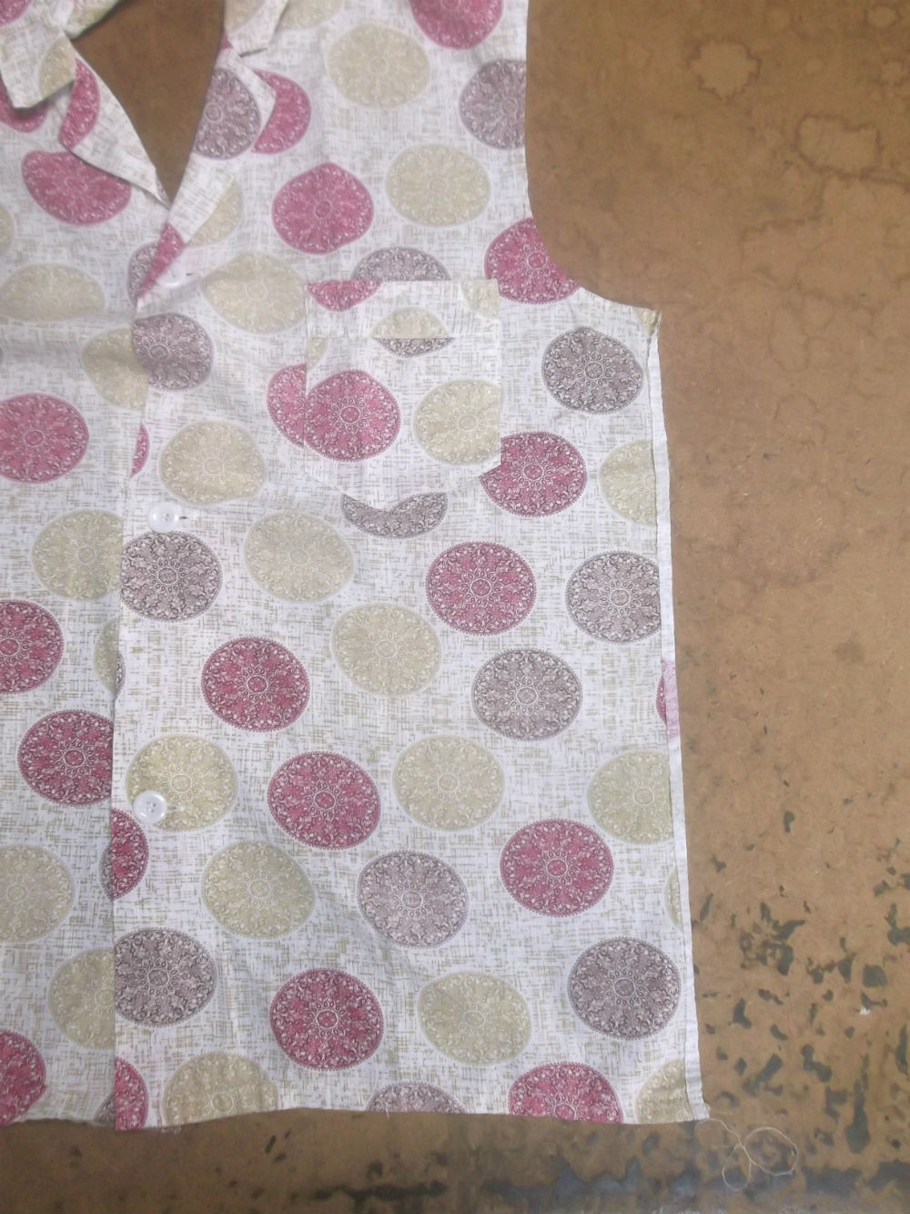 10枚目はシャツの胴体の着丈以外の肩幅と身幅と裾幅に生地を見本に合わせてカットした後です。