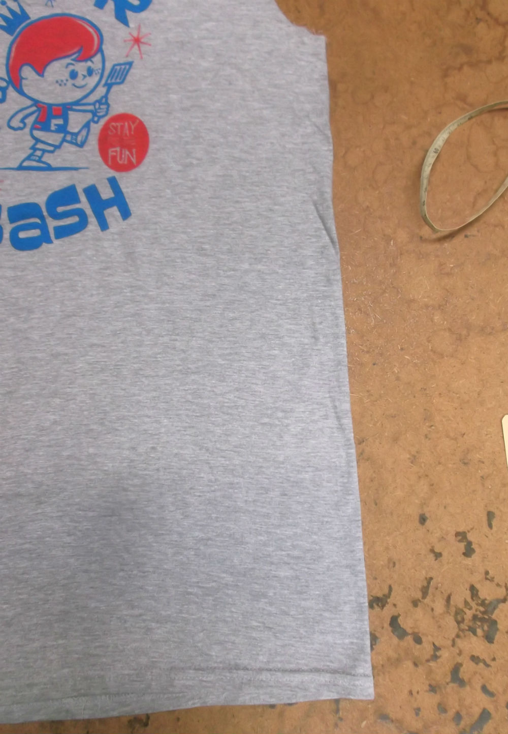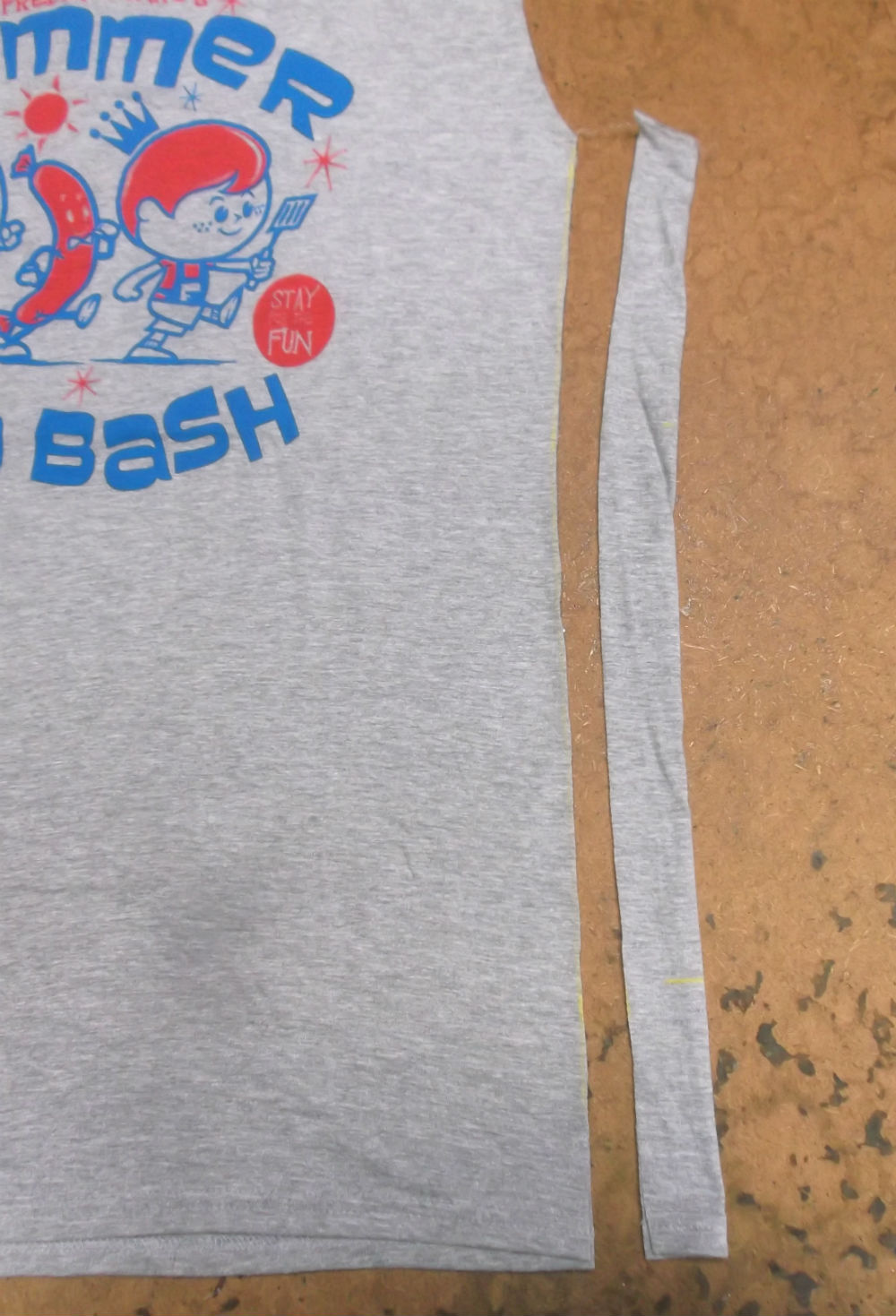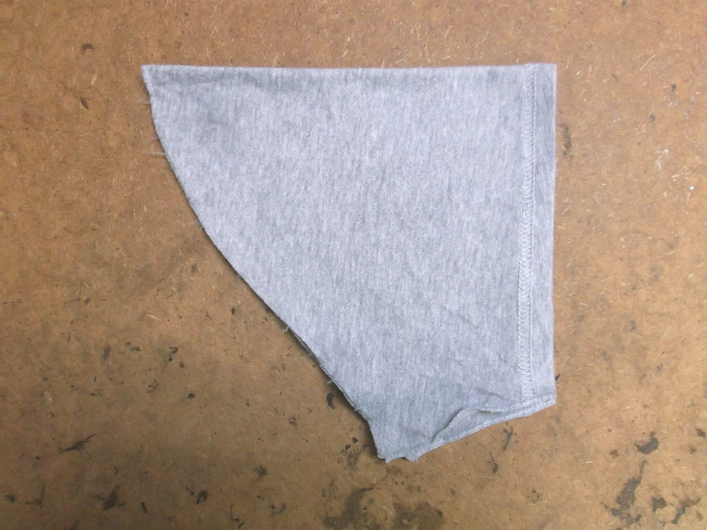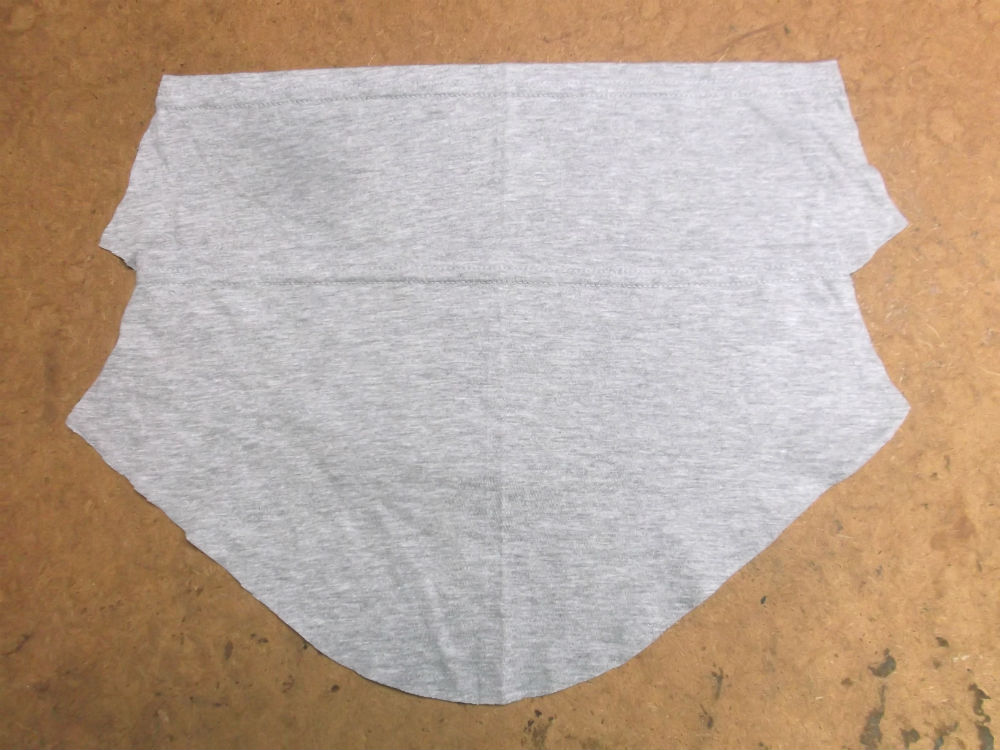 5枚目はTシャツの胴体の脇から裾のサイドの生地を見本の幅に合わせてカットした後の写真です。