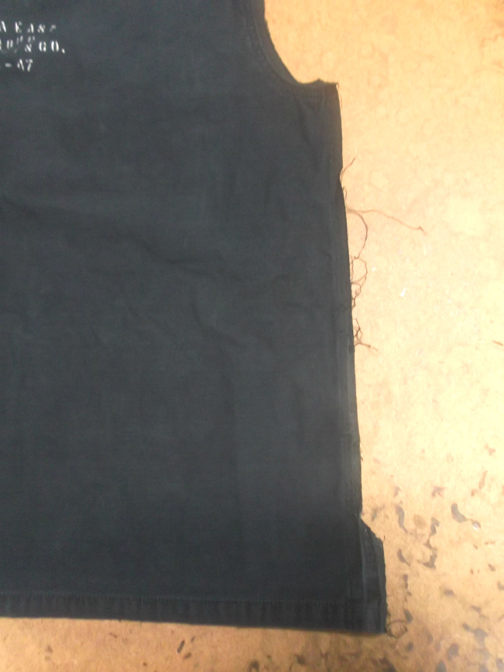 7枚目は後ろ見ごろの脇から裾のサイドの生地を見本の幅になる様にカットした後の写真です。