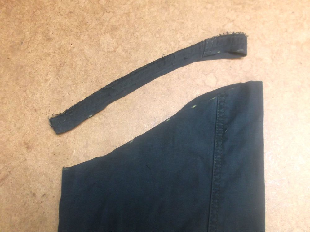 13枚目は袖山から袖丈を見本の長さに合わせて短くカットした後の写真です。