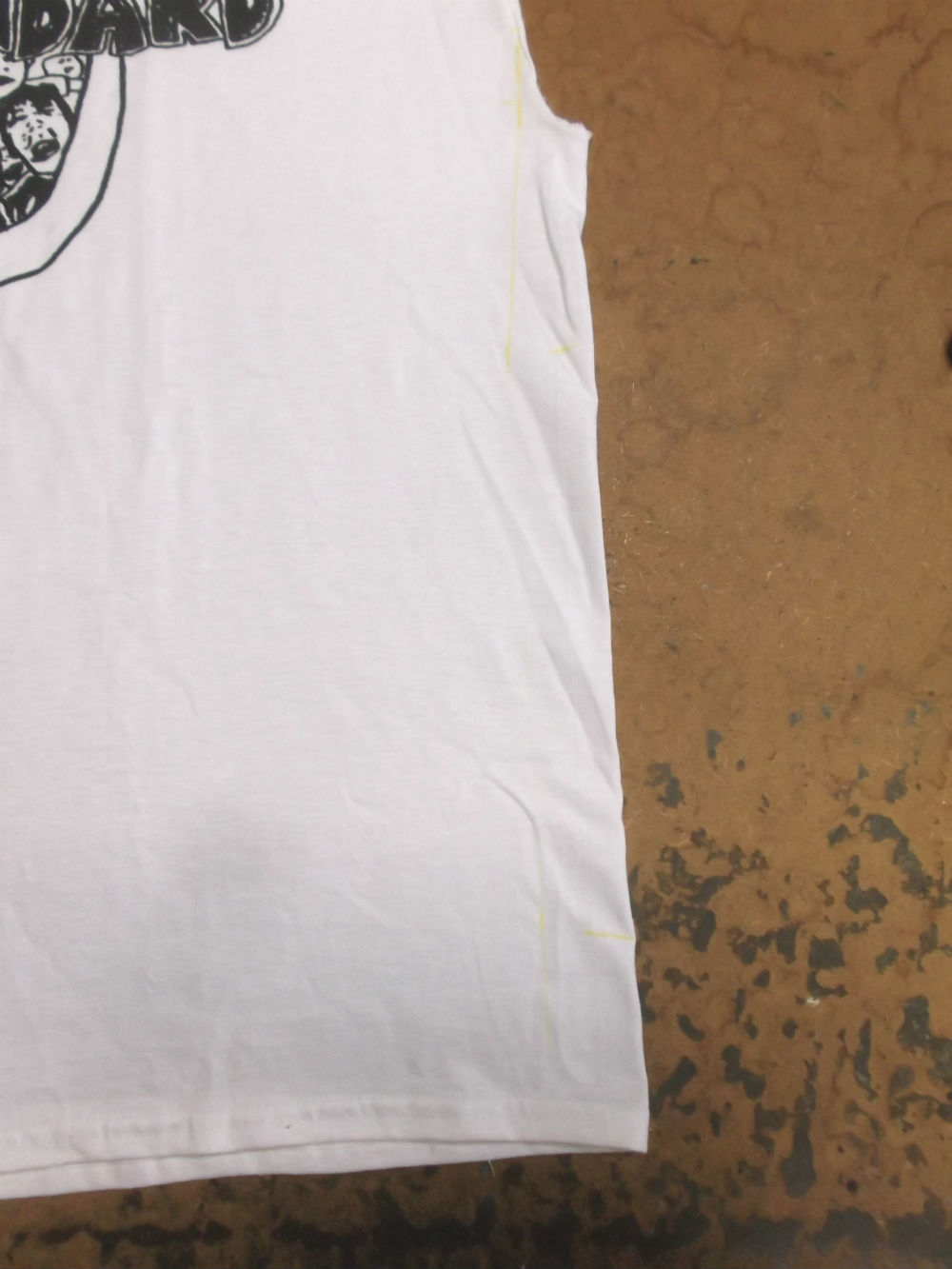 10枚目は大きいTシャツの胴体の肩幅、身幅、裾幅、着丈の生地を見本の幅に合う様にカットした後の写真です。