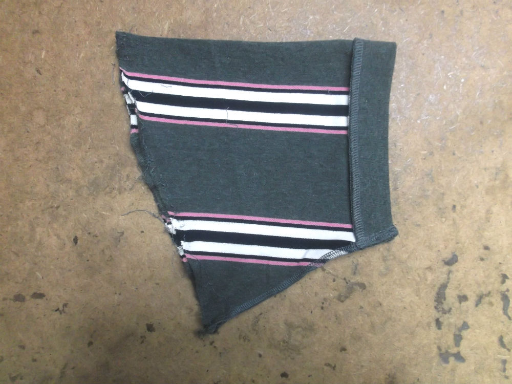 5枚目はポロシャツの胴体の着丈以外の肩幅、身幅、裾幅の生地をカットした後の写真です。