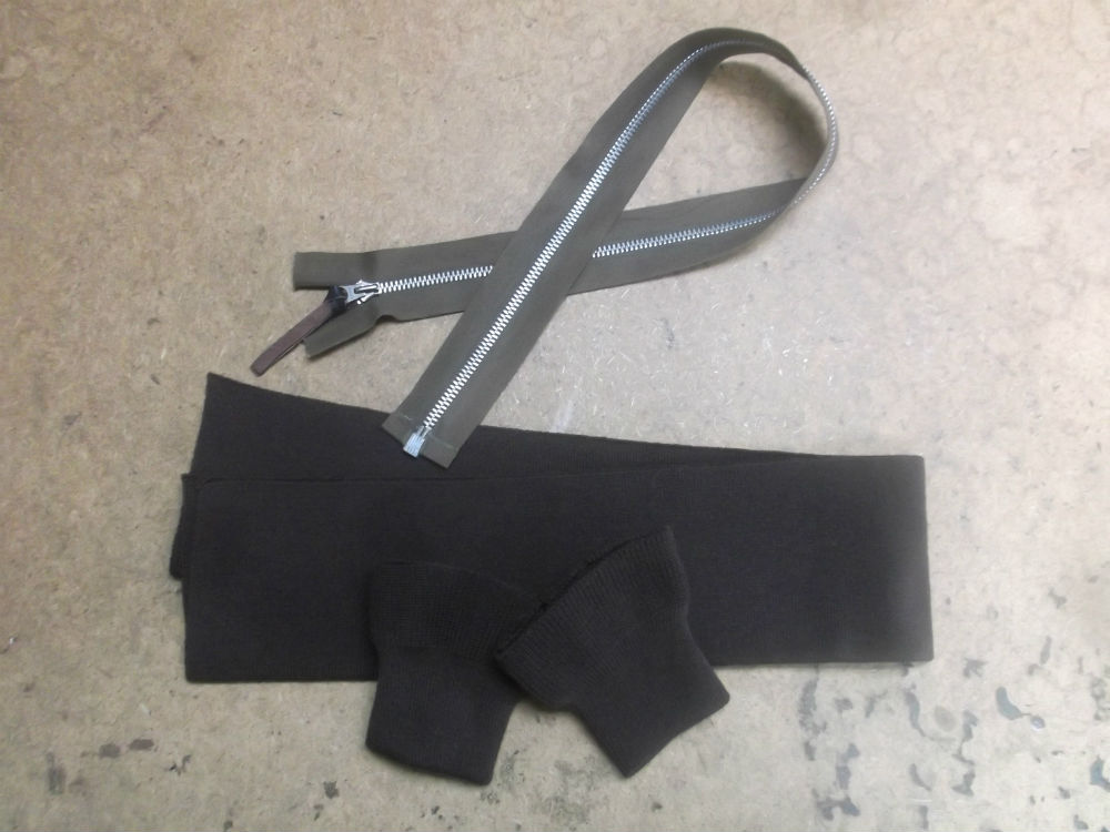 12枚目は取り外したファスナーと袖と腰回りのリブニットの写真です。