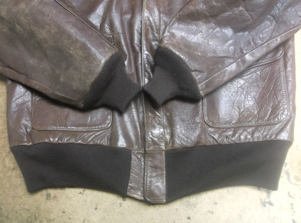 1枚目は神奈川県からの郵送のお客さんのジッパーとリブニットを交換していく前のA-2フライトジャケットです。