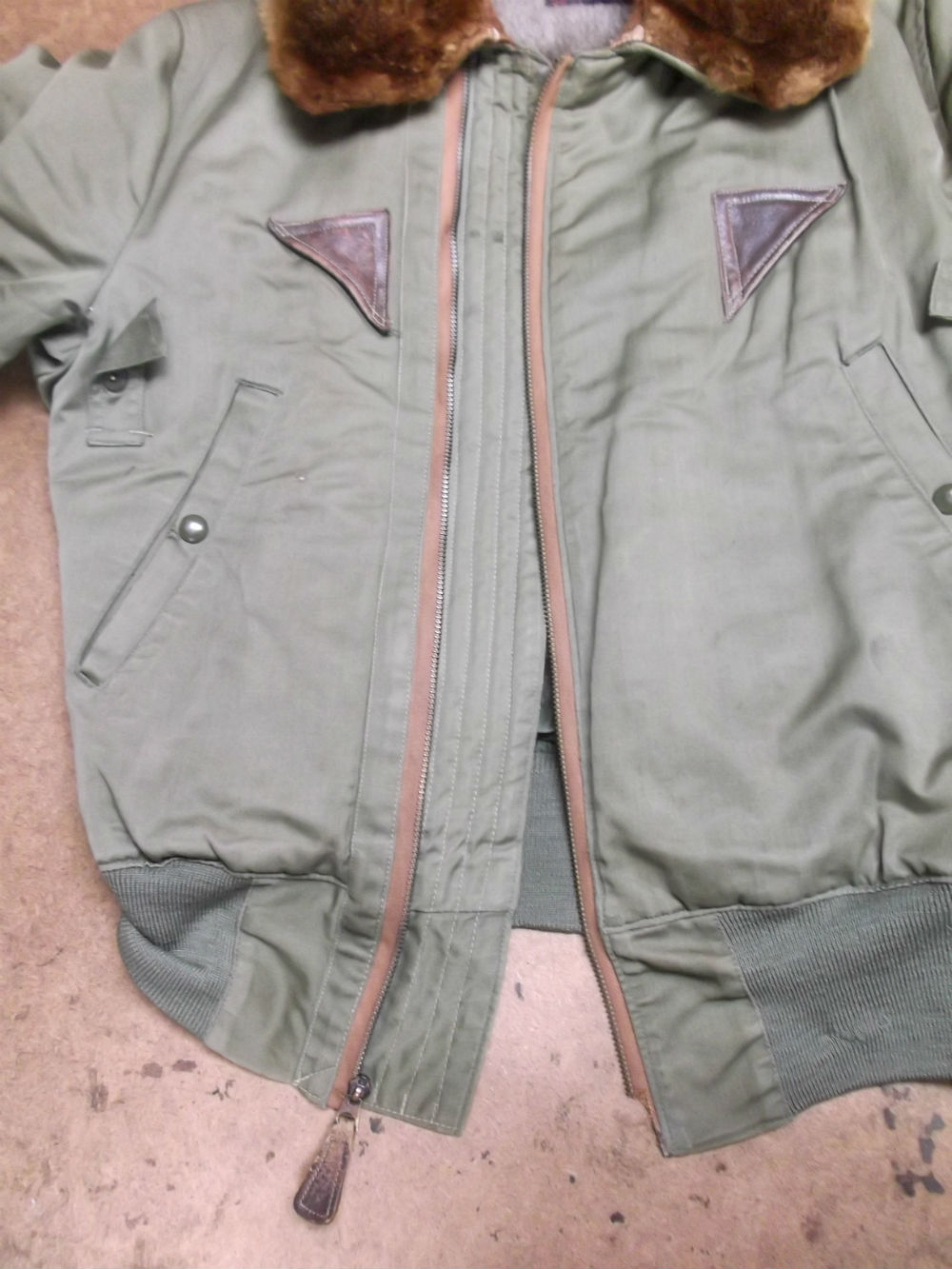 11枚目は新しいコンマーのジッパーをB-15フライトジャケットに取り付けた後の写真です。
