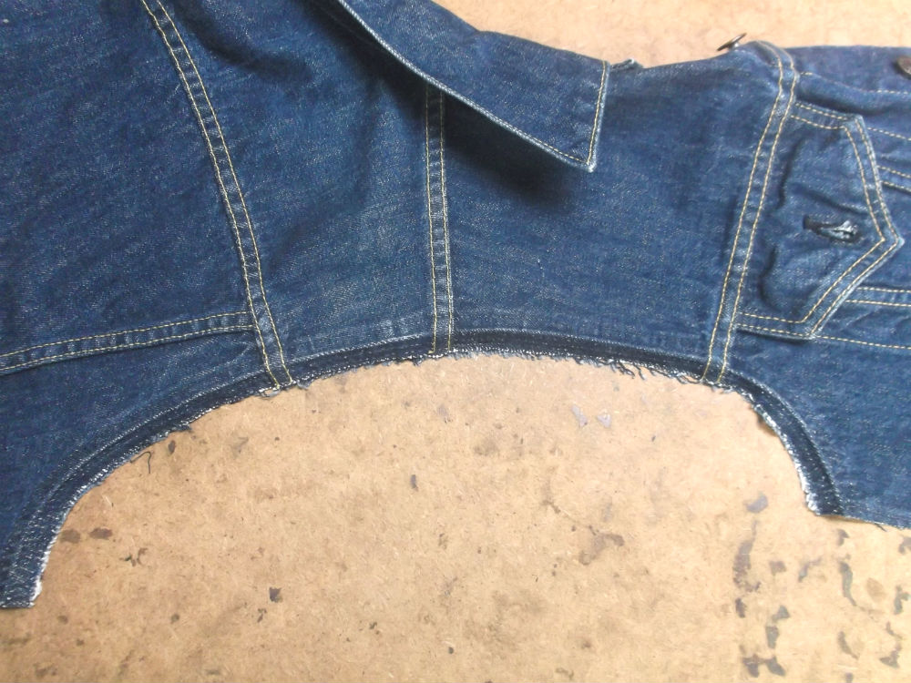 大きいサイズのリーバイスのGジャンをお客さんの気に入ったサイズの見本でお借りしたGジャンを基準に小さくリサイズ デニムジャケット寸法詰め直し