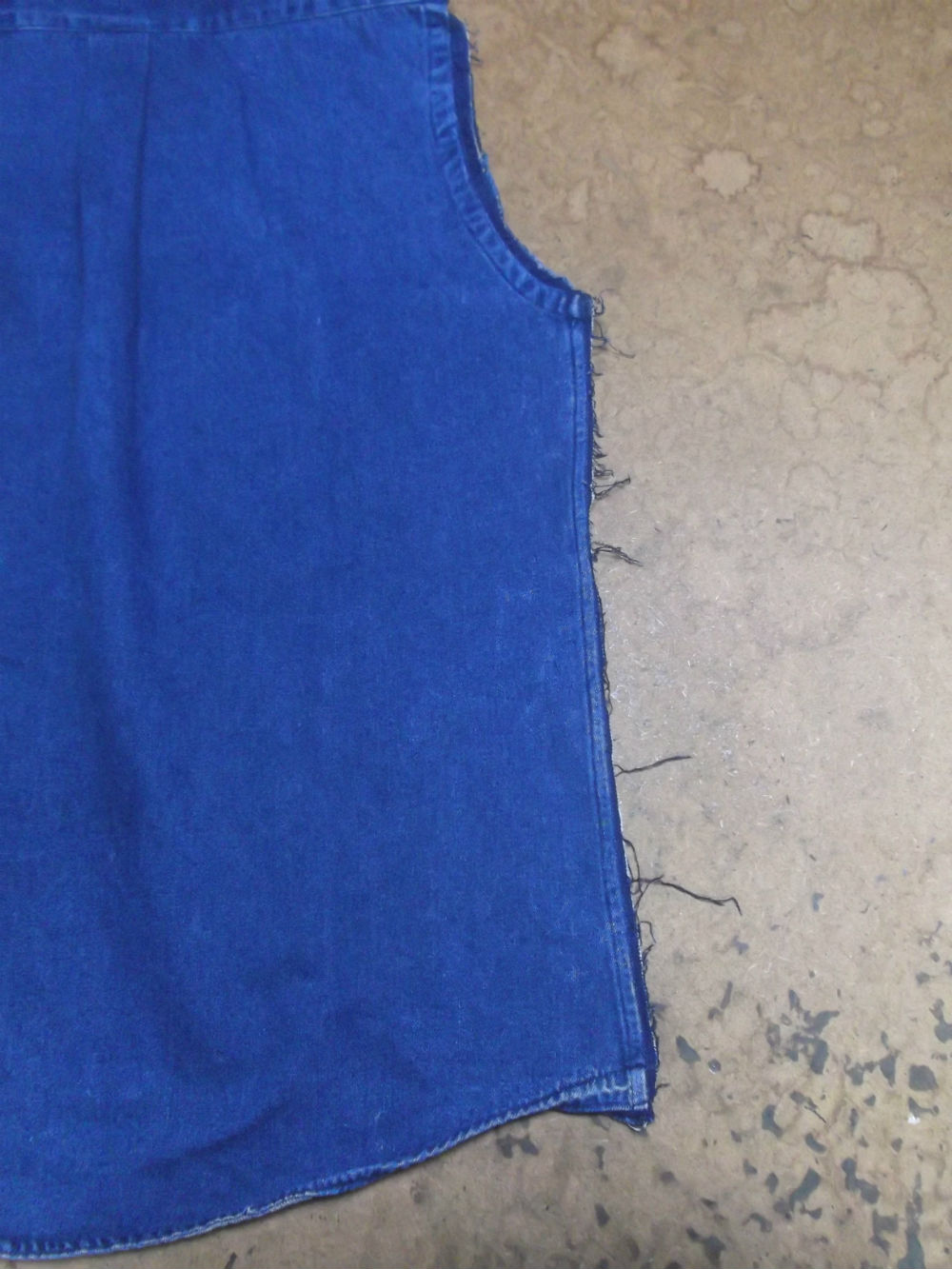 5枚目は前身ごろの脇から裾のサイドの生地をカットした後の写真です。