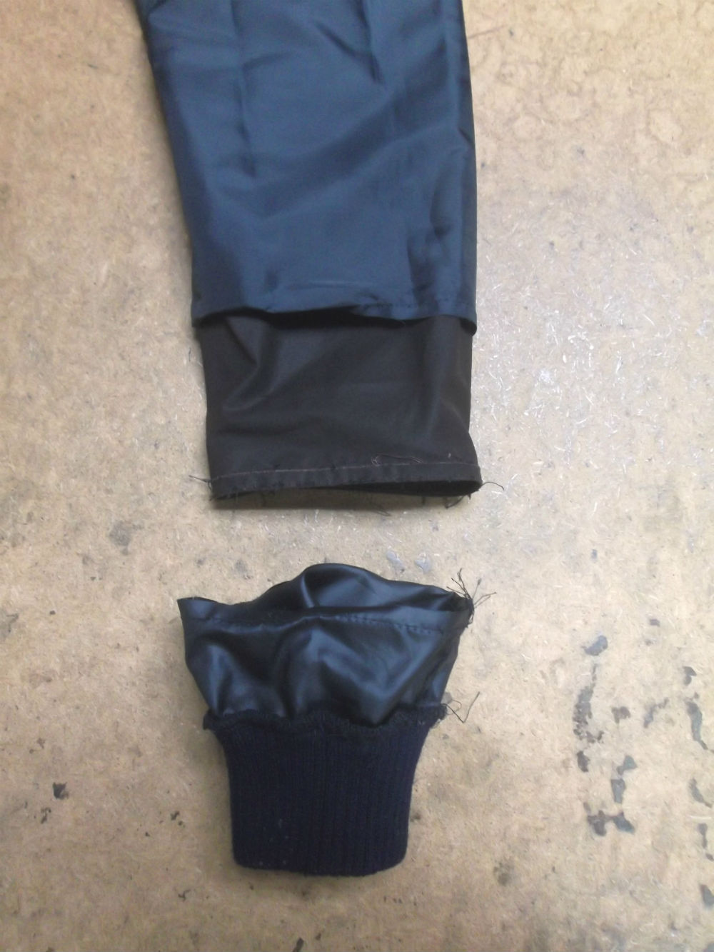 3枚目は裏地の袖先のリブニットのパーツを外した後の写真です。
