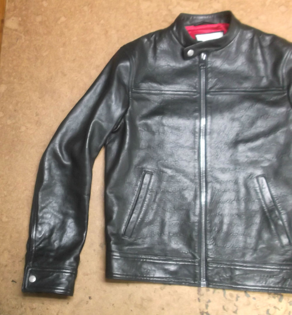 9枚目は10枚目との比較で袖丈を短くしていく前のレザージャケットの写真です。