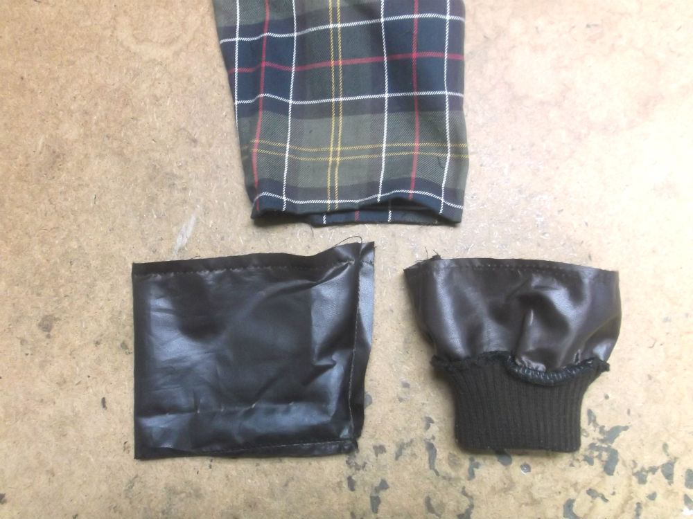 長い袖丈と太い腕幅のサイズを変更したいお客さんのバブアーのオイルドジャケットをリサイズしていきます。
