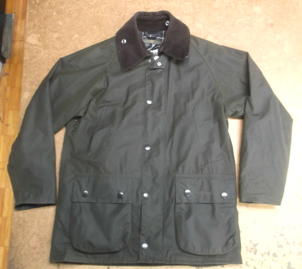 1枚目は沖縄県からの郵送のお客さんの袖丈と腕の幅を変更していく前のバブアーのオイルドジャケットです。