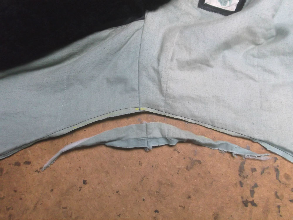 6枚目は裏地の脇から裾のサイドの生地をカットした後の写真です。
