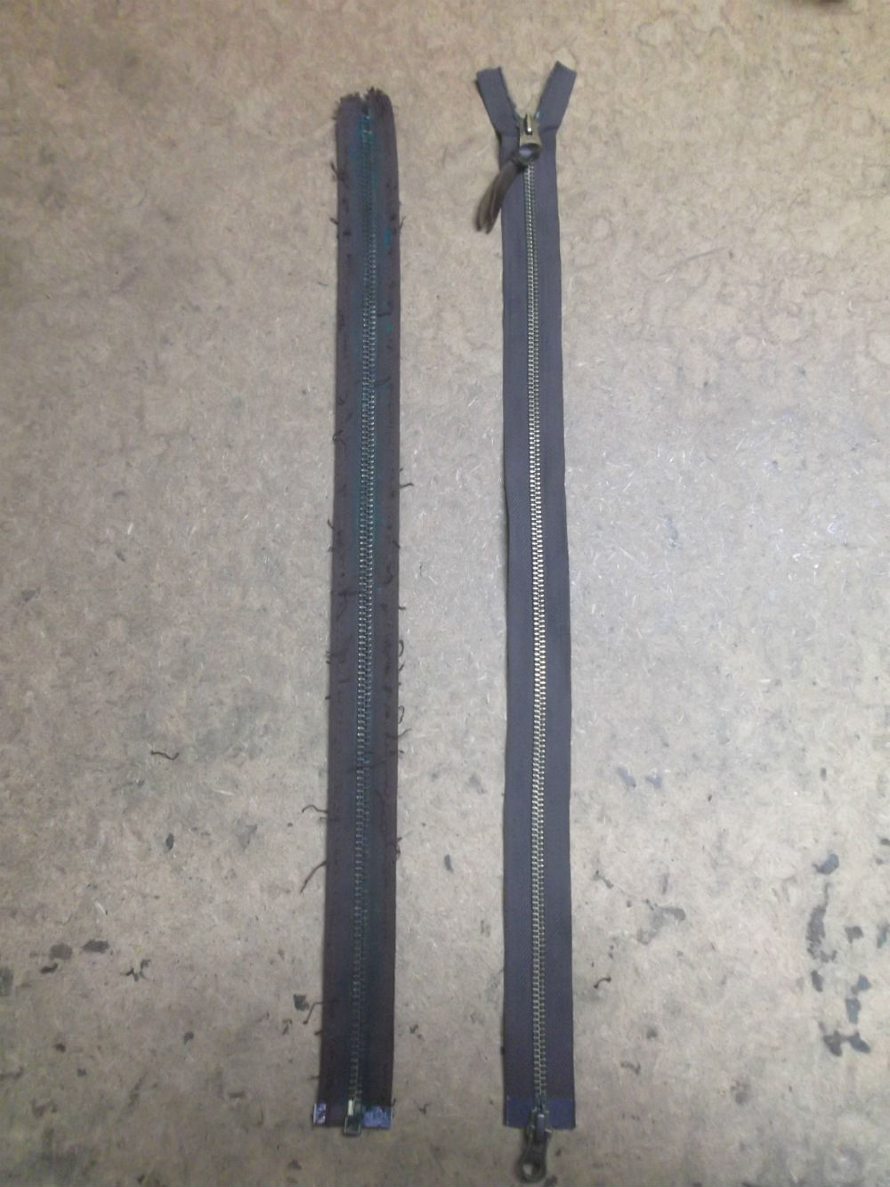 33枚目は同じ長さになった後のYKKのダブルジッパーの写真です。