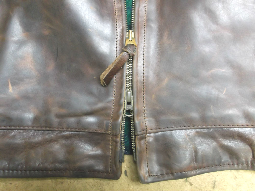 1枚目はサイズダウンをしていくのとオープンジッパーをダブルジッパーに交換していく前のエアロレザーです。