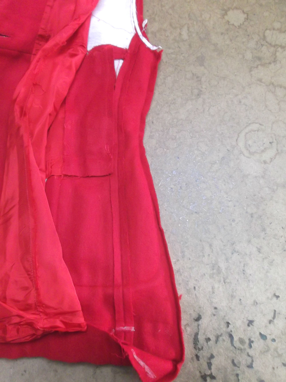 8枚目は裏地の前身ごろの脇から裾のサイドの生地をカットした後の写真です。