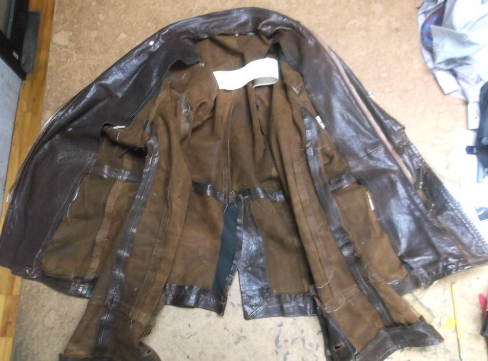 24枚目は袖のパーツと胴体の新しい裏地をレザージャケットに組み直した後の写真です。