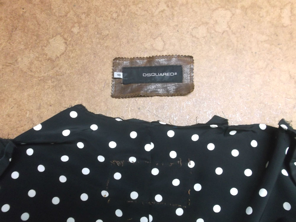 5枚目は裏地の襟下にブランドタグが付いてますので取り外して新しい裏地の生地に取り付けていきます。