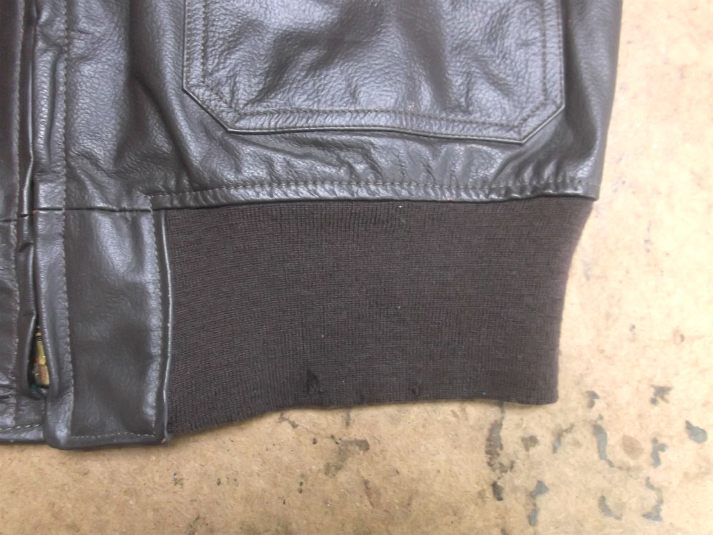 1枚目は北海道からの郵送のお客さんの両袖と腰回りのリブニットを交換していく前のG-1フライトジャケットです。