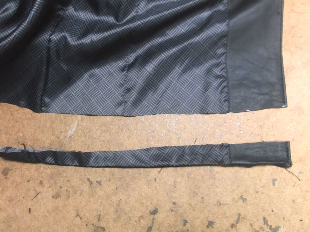 7枚目は袖山のレザーをカットした後に脇の別パーツを取り付けた後の写真です。
