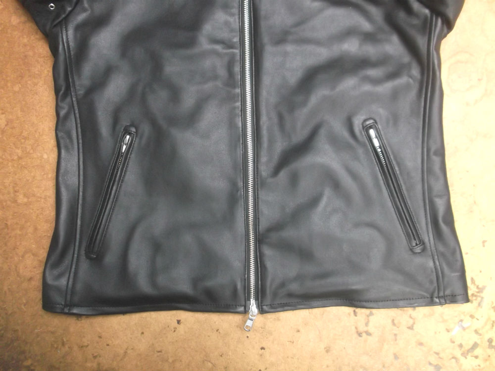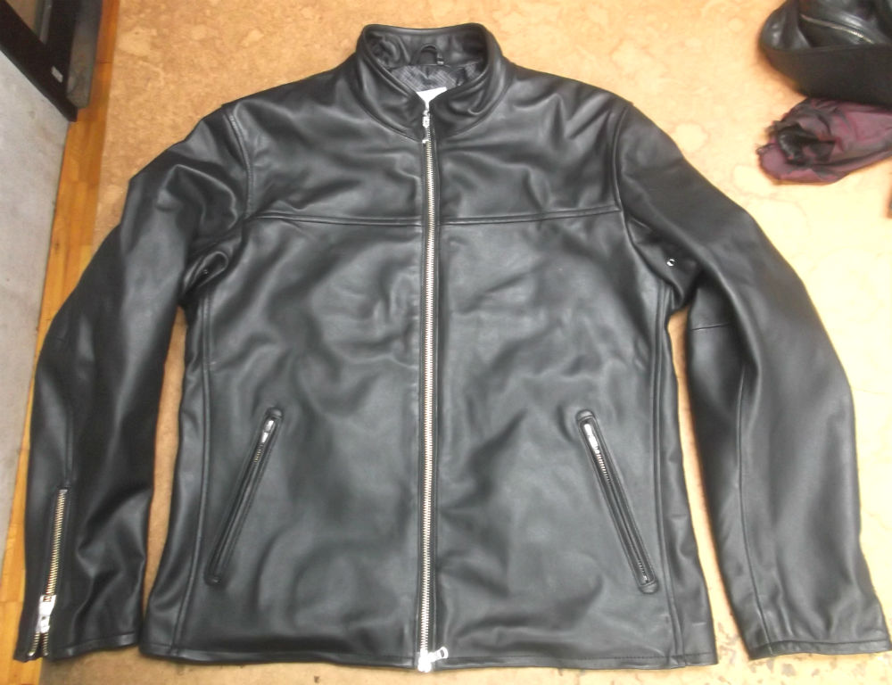25枚目は26枚目との比較で袖丈と着丈を短くしていく前のレザージャケットの写真です。