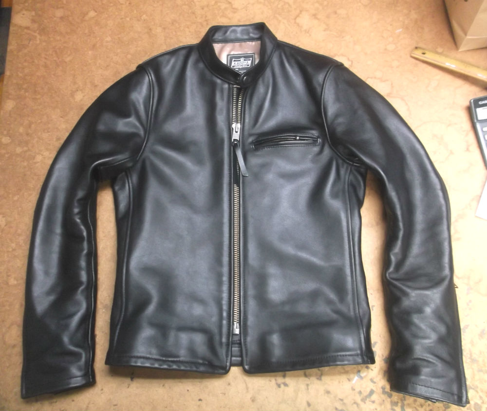 7枚目は8枚目との比較で袖丈を短くしていく前のレザージャケットです。