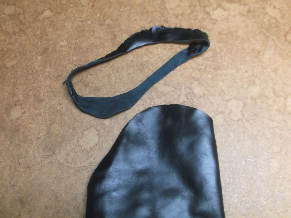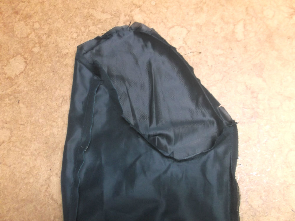 7枚目は裏地の袖山の生地も表のレザー部分と同じ長さを短くしていきます。