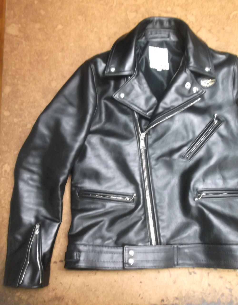 1枚目は茨城県からの郵送のお客さんの長い袖丈を短くしていく前のライダースジャケットです。