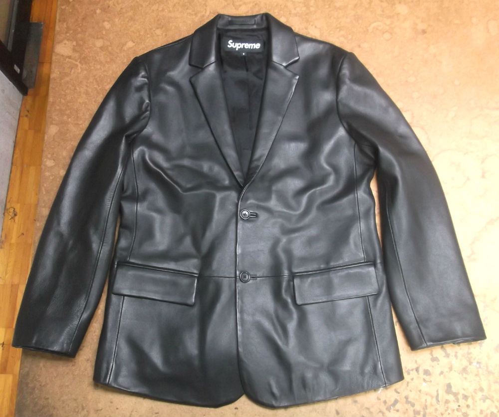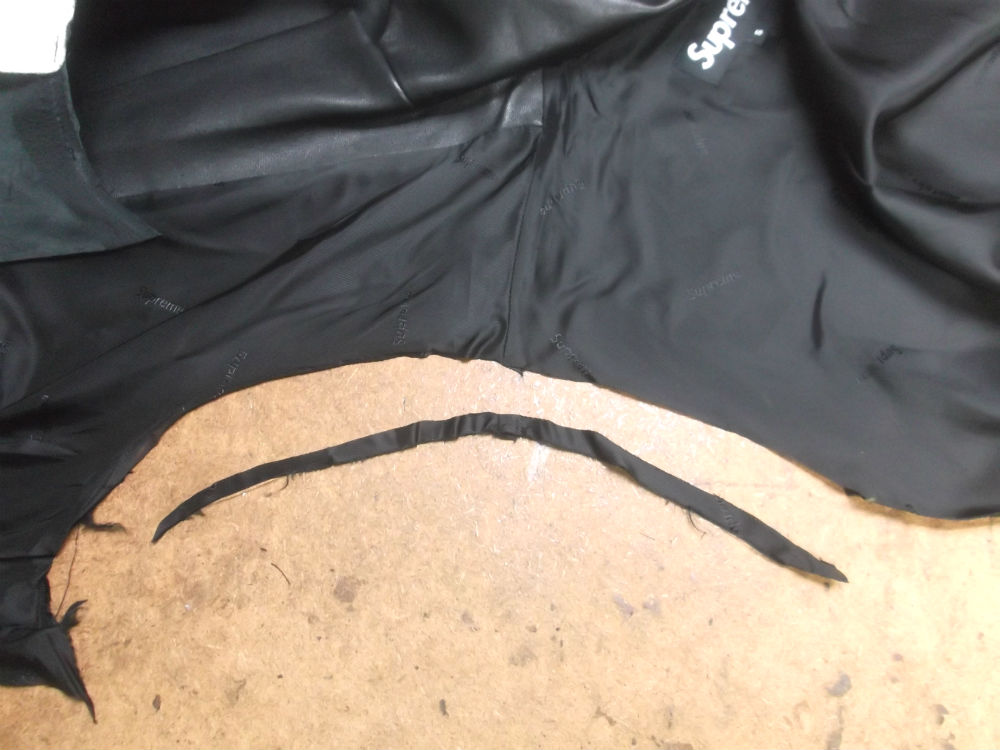 大きいサイズのシュプリームのレザージャケットをお客さんの好みのサイズに小さくリサイズ