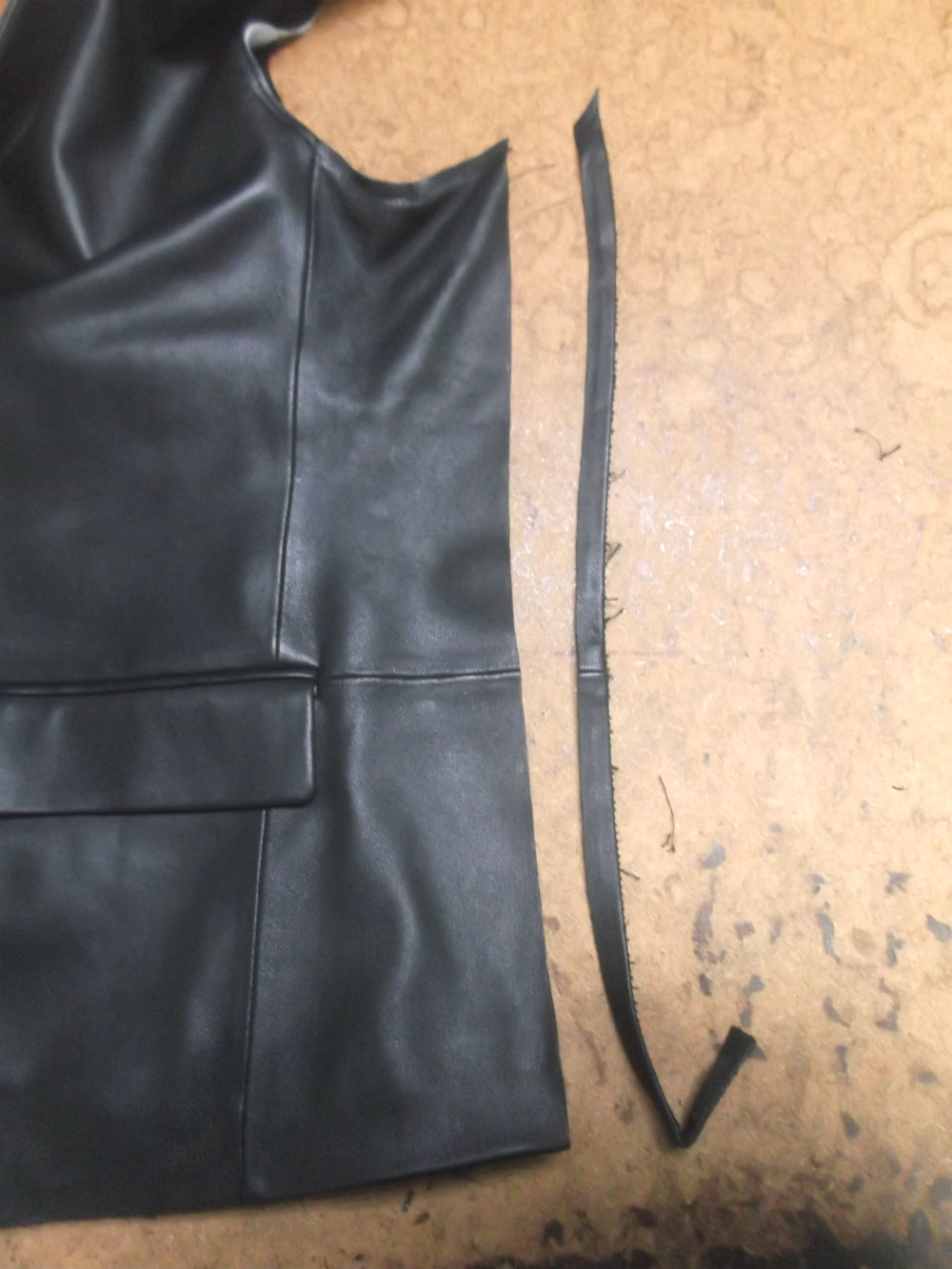 8枚目は表のレザー部分の脇から裾のサイドのレザーをカットした後の写真です。