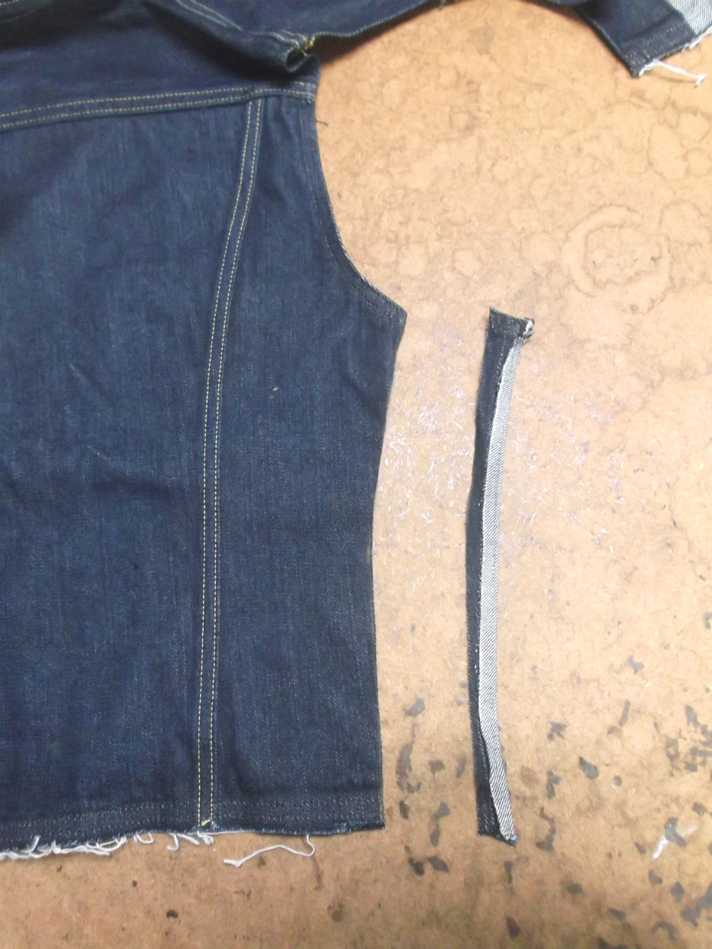 大きいサイズのリーのGジャンをお客さんの好みのサイズに小さくリサイズ デニムジャケット寸法詰め直し