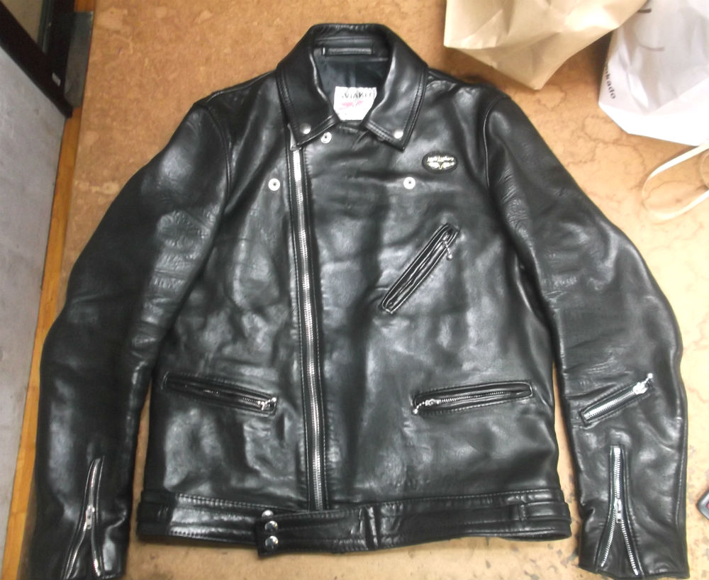 1枚目は東京都からの郵送のお客さんの長い袖丈を短くしていく前のライダースジャケットです。