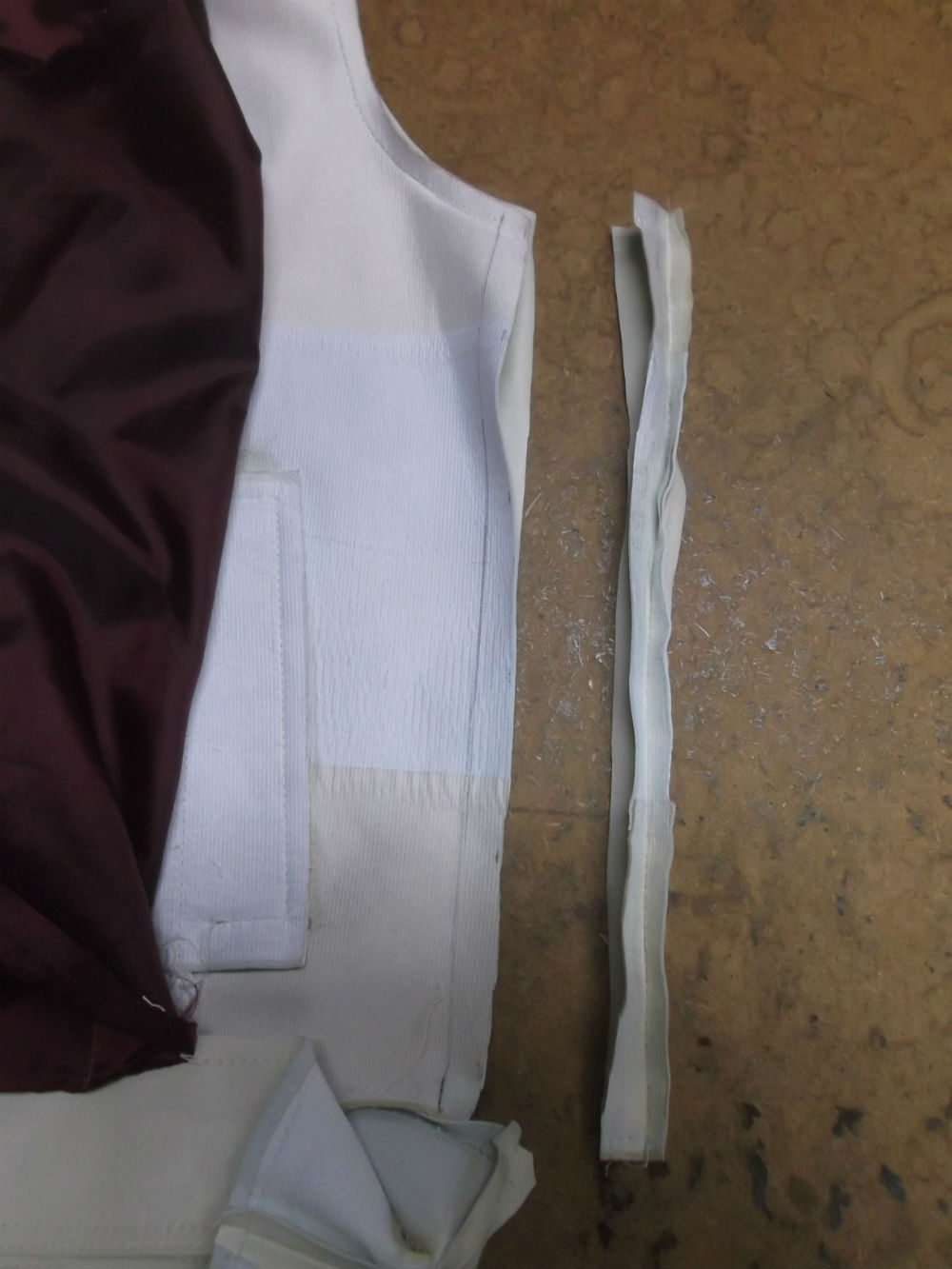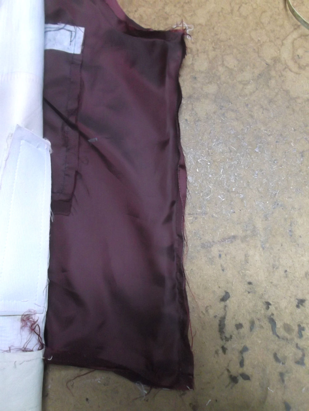 10枚目は脇から裾の裏地の生地をカットした後の写真です。