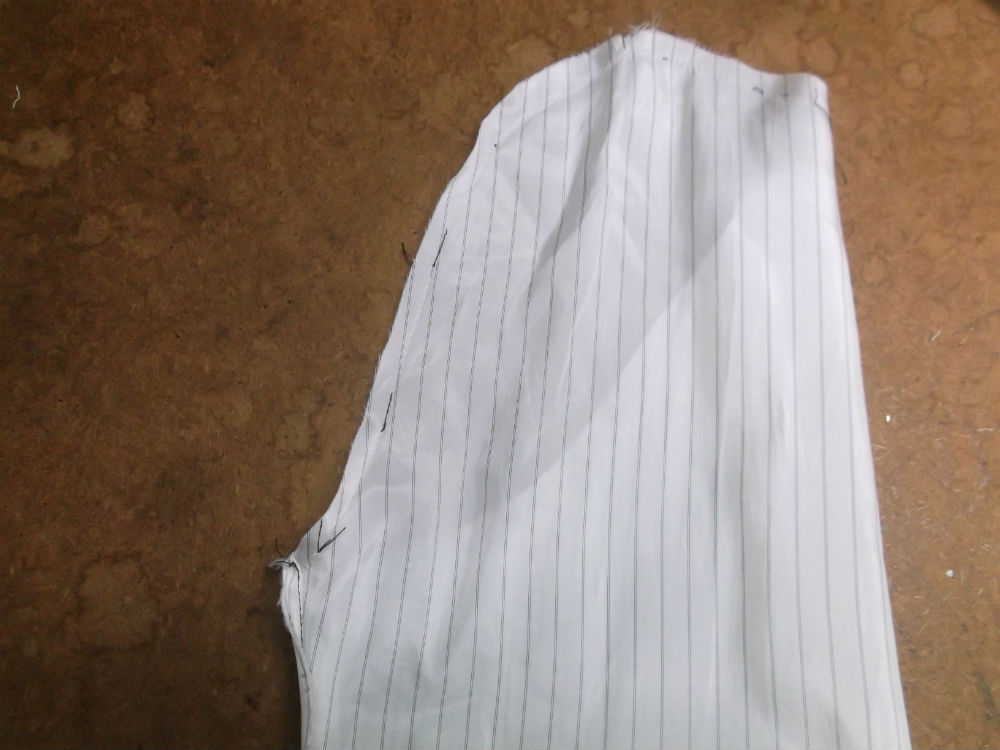 21枚目は裏地の袖山の生地をカットした後の写真です。