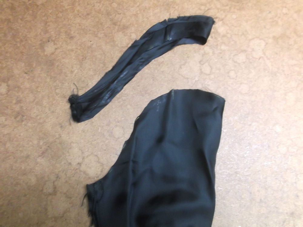7枚目は裏地の袖山の生地をカットした後の写真です。