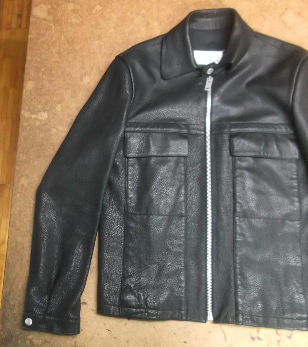 マルジェラの長い袖丈のレザージャケットをお客さんの好みの長さに短くリサイズしていきます。