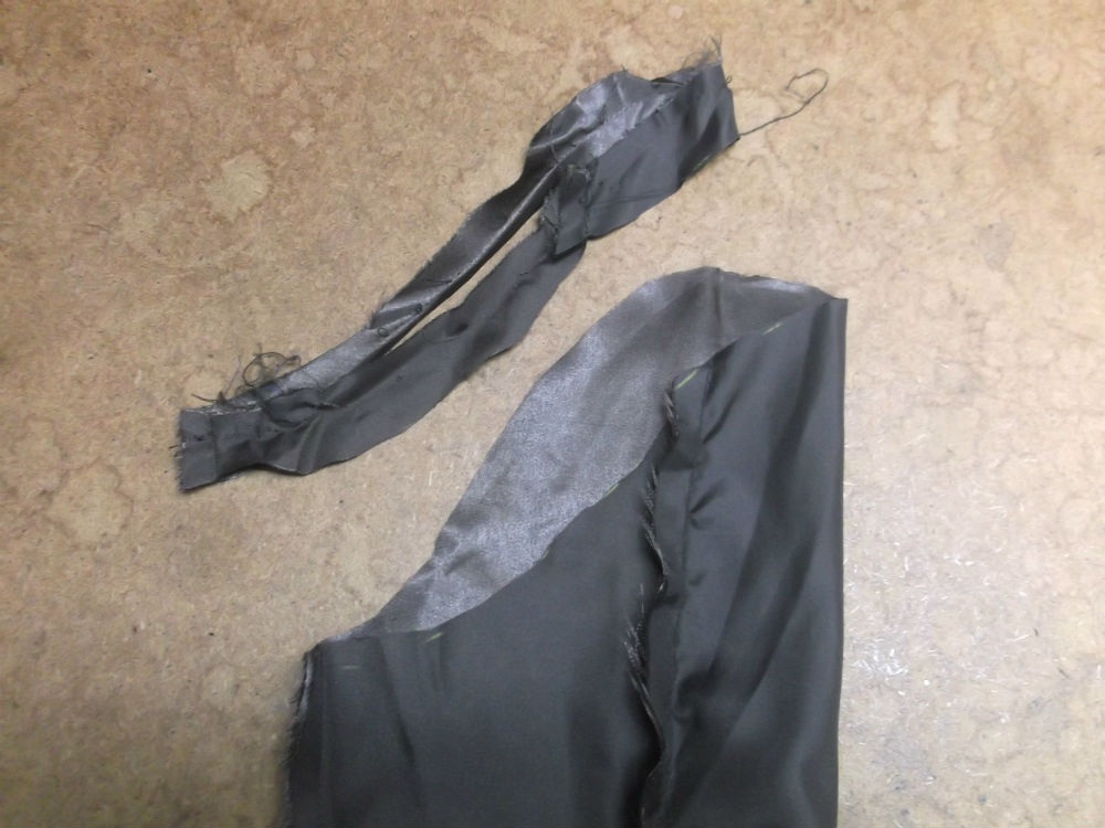 3枚目はアームホールの縫いしろから左右の袖のパーツを取り外した後の写真です。