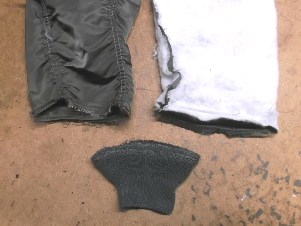 所々破れだしたCWU-45Pフライトジャケットのリブニットを新しいものに交換していきます。
