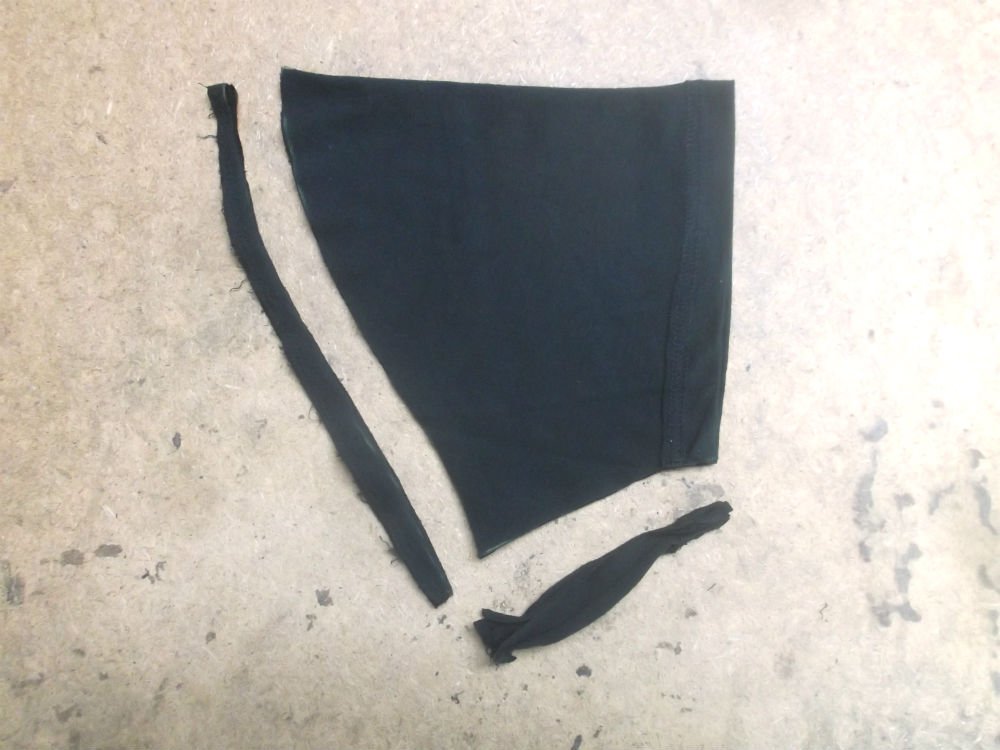 8枚目はTシャツの胴体の着丈以外の肩幅、身幅、裾幅の生地を見本に合う様にカットした後です。