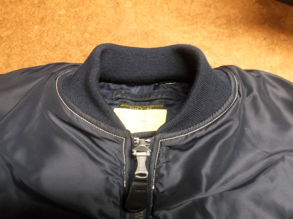 腰回りは交換ぜずに襟と両袖のリブニットを新しいものにB-15フライトジャケットを交換していきます。