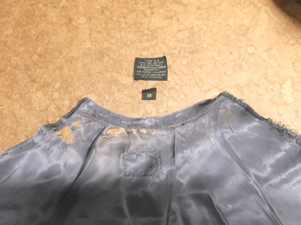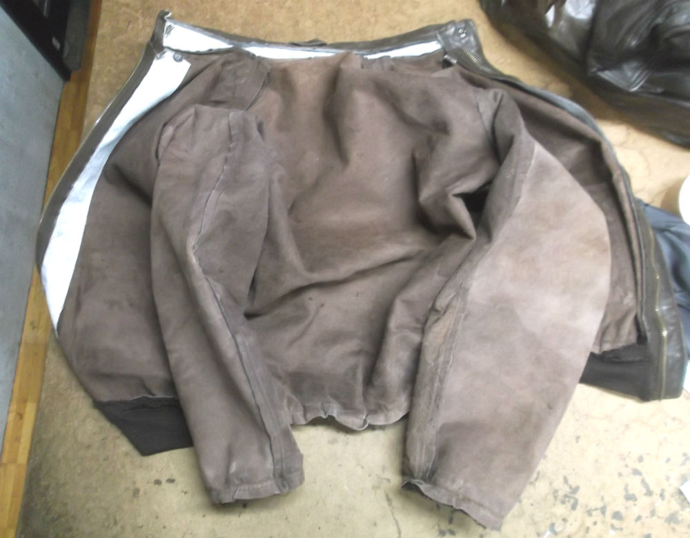 5枚目はA-2フライトジャケットから裏地を取り外した後の写真です。