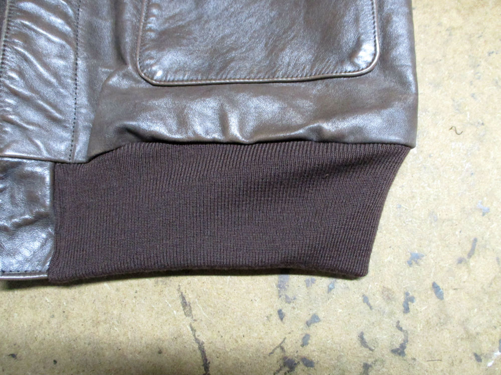 33枚目はA-2フライトジャケットに両袖と腰回りのリブニットを取り付けた後の写真です。
