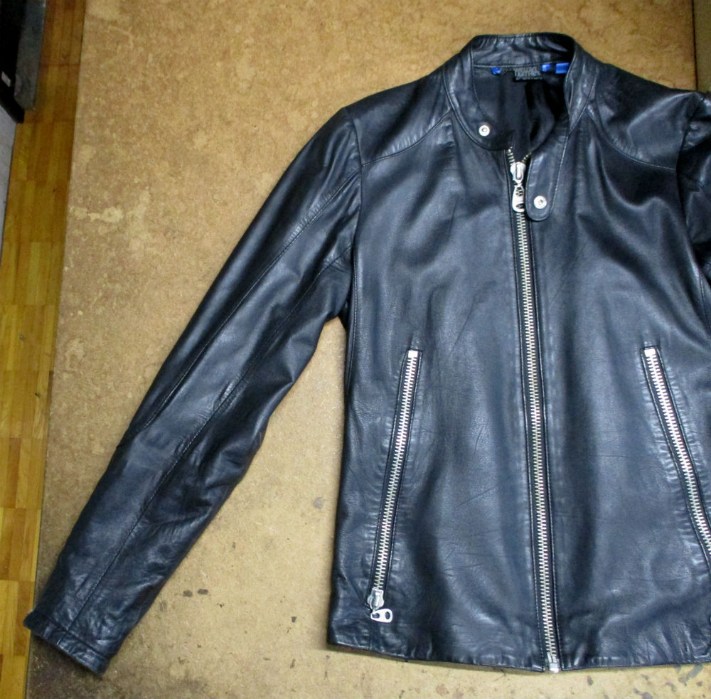 1枚目は群馬県からの郵送のお客さんの袖丈と着丈を短くしていく前のレザージャケットです。