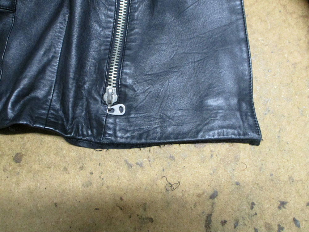 この後、ばらした裾の裏地のレザーのパーツを組み直して表の裾に組んで短くしたファスナーを取り付けて着丈は完成です。