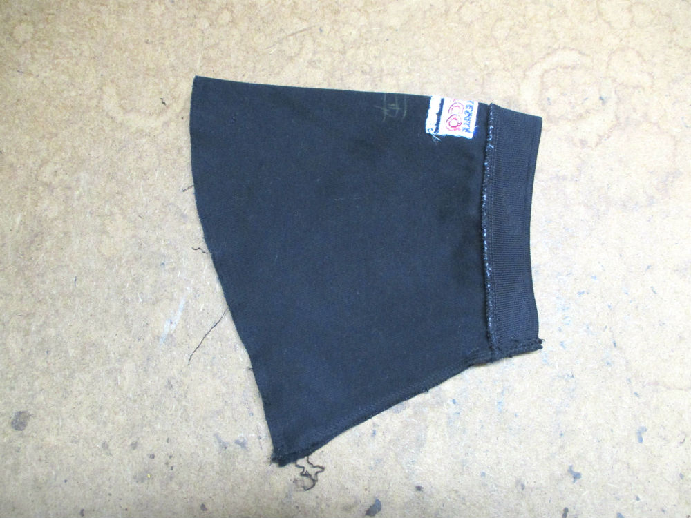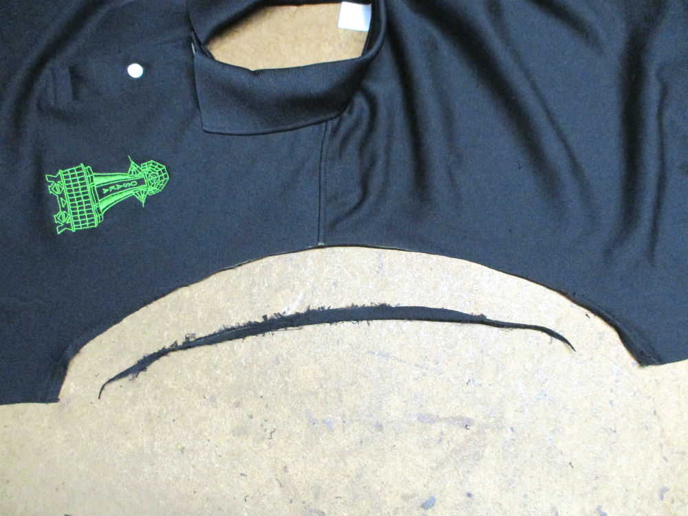 5枚目はポロシャツの胴体の脇から裾のサイドの生地をカットした後の写真です。