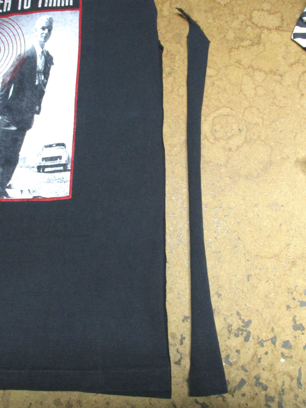 3枚目はTシャツの胴体のアームホールの縫い目から左右の袖のパーツを取り外した写真です。