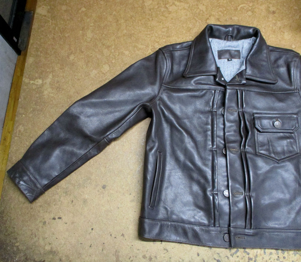 1枚目は長い袖丈を短くしていく前のレザージャケットです。