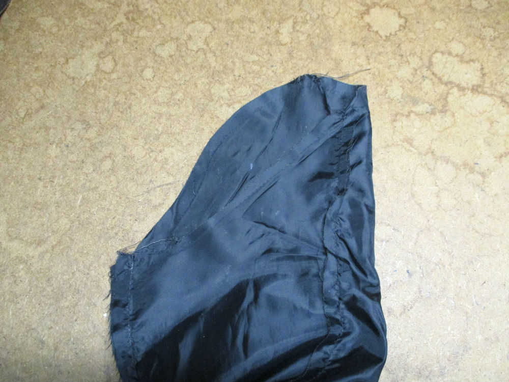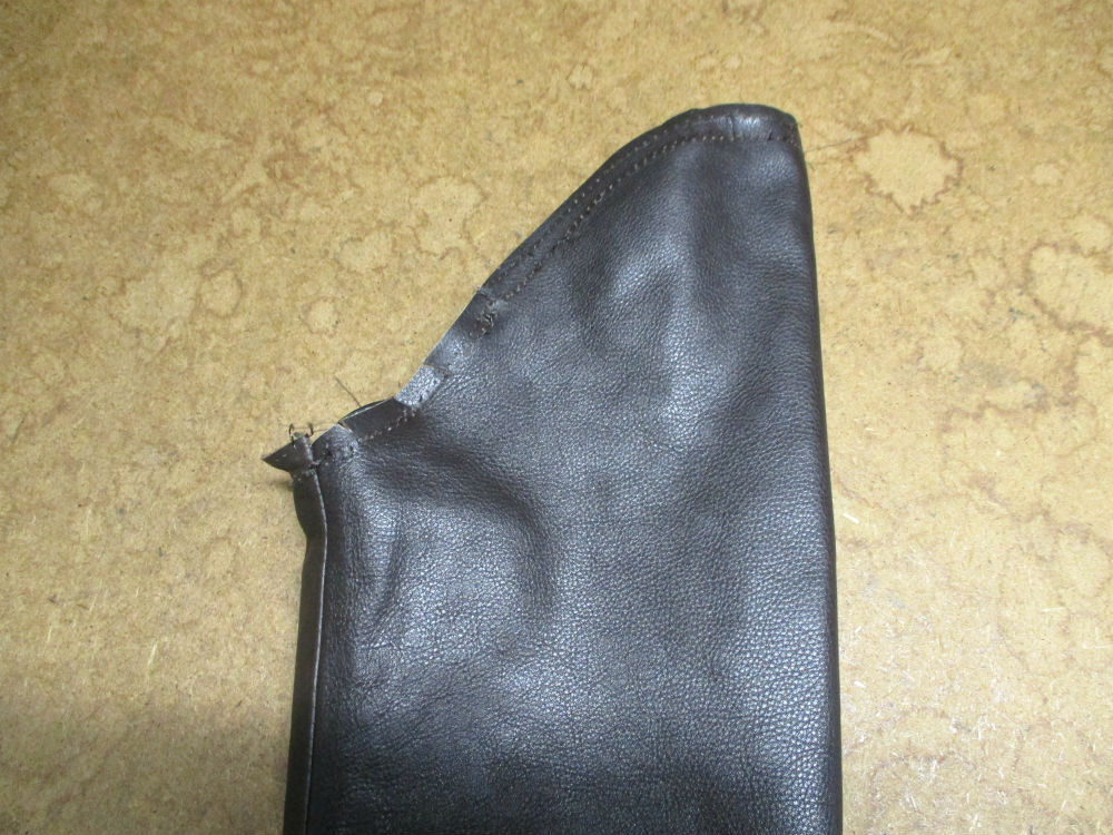 6枚目は裏地の袖山の生地を表のレザー部分と同じ長さを短くしていきます。